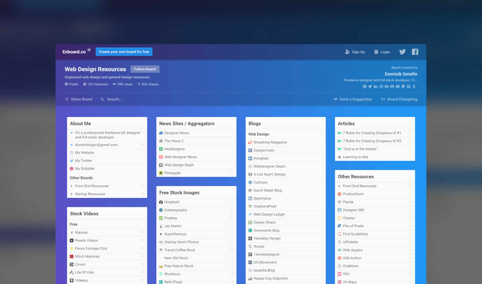 Enboard lets you create and follow boards filled with lists containing links, notes and checkboxes organized through categories. more