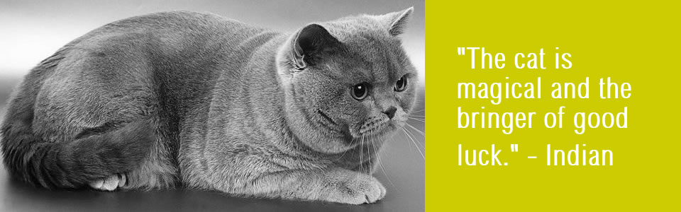 The cat is magical and the bringer of good luck. - Indian